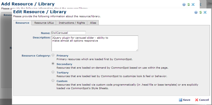 When registering resources it's a best practice to include the version number in the name and then create a generic alias without the version, so you can easily upgrade without having to rename all references. For example use the name ‘MyExternalLibrary 1.2.3.4’ to register the resource, then create an alias named MyExternalLibrary so you can quickly point all references to MyExternalLibrary to a different version when it becomes available.