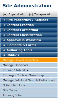 Administrators can add, delete, clone, and set security for your site’s saved searches.