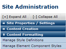 To help your site maintain and manage consistent graphical design, CommonSpot provides full support for Cascading Style Sheets and current design practices. Semantic Web developers can create style classes that conform to design specifications and make these classes available in CommonSpot. Administrators can easily manage and contributors can intuitively choose the appropriate CSS classes for controlling styling for general or grid row layouts and layout elements.