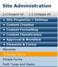 For more on CommonSpot's extensive metadata support, see Metadata Forms Overview and Custom Elements.