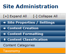 CommonSpot’s complete, out-of-the-box, taxonomy management offers a taxonomy term editor, a taxonomy API, and a facet-based navigation Element for defining "broader than" and "narrower than" relationships between terms. Organizations can rapidly assign content to terms using the taxonomy classification custom metadata field. Developers using the taxonomy API to programmatically access terms and relationships within a taxonomy can build unlimited custom interfaces to related content.