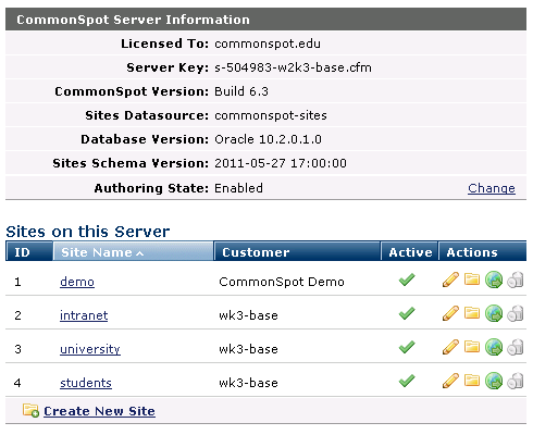 To create a new CommonSpot site, you need CommonSpot Server Administration rights and: