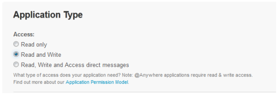 9. Click the Settings tab. In the Application Type section set Access to Read and Write and save it.