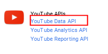 Google displays a list of APIs. Under YouTube APIs, pick YouTube Data API.