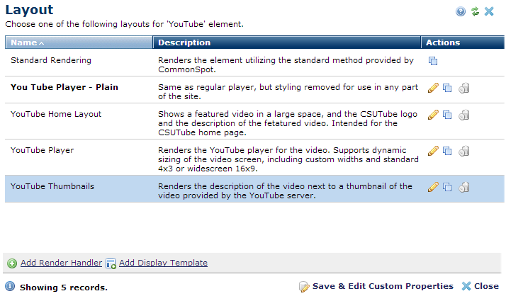 Select a rendering option and then click Save and Edit Custom Properties to update this Element instance with the highlighted layout.