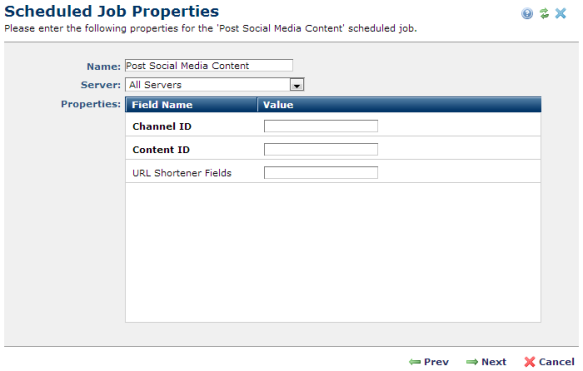 for this job in Site Scheduled Jobs or clicking Next in the process of adding a new Post Social Media job displays job properties.