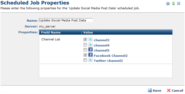 for this job in Site Scheduled Jobs or clicking Next in the process of adding a new Social Media Post job displays job properties.