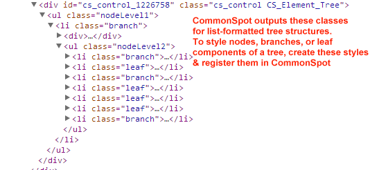 You can define styles for all tree types. For list trees structures, CommonSpot applies classes which have no effect until you define, register, and assign classes with identical names in CommonSpot. Create a style sheet naming these classes and add them to a style sheet set registered in CommonSpot. See Style Sheet Sets in the Contributor's Reference.