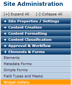 Access this dialog from the Elements section of the Site Administration dashboard.