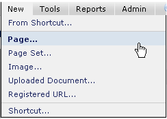 To create a page, select Page from the New menu. This option is accessible in both Read and Author mode.