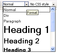 In addition, Contributors can format a block of text as a single unit, using familiar formatting headings such as H1, H2, <p>, and <div>. Simply select the paragraph or place the cursor inside it, then choose a heading tag from the Format drop-down in the toolbar. The heading is set for the entire paragraph that contains the current selection. If that paragraph already has a heading tag applied, that tag is replaced by the new one. The image below shows the block-level formats in the Format drop-down menu.