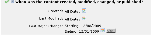 You are here: Contributors Reference > CommonSpot Menus > Tools Menu > Find > Specify Date Range/Duration