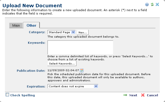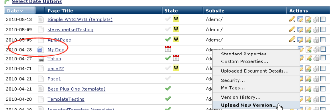 The process of uploading new documents and new versions of existing documents is similar to Creating a New Page.