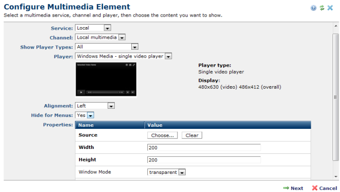 You are here: Elements Reference > Multimedia Element > Configure Multimedia Element