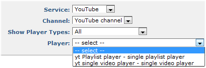 Player: Displays service-specific options based on Player Type selection, as shown below. Pick from available players.