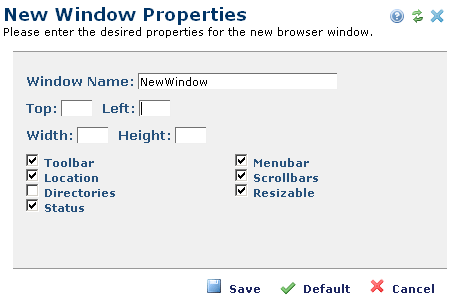 This dialog lets you name the window, set its position, size, and the characteristics of the new browser window.