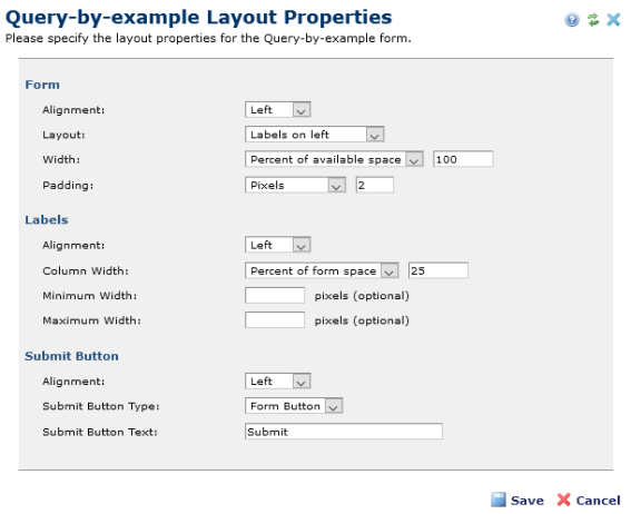 icon and select Layout to open the Query-by-example Layout Properties dialog.
