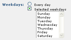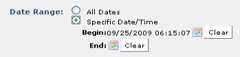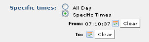 If you want this content to display every day without variation, select All Dates. If you want this content to display for a certain day or period of time, select Specific Date/Time and click the calendar icons to open the date picker for entering start and end times.