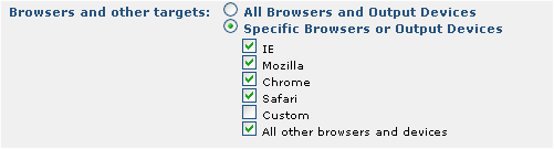 To choose the sites for which the Element will render, click the subsite’s radio button. The drop down list displays a list of all the subsites. Choose the site(s) for which the Element will display.