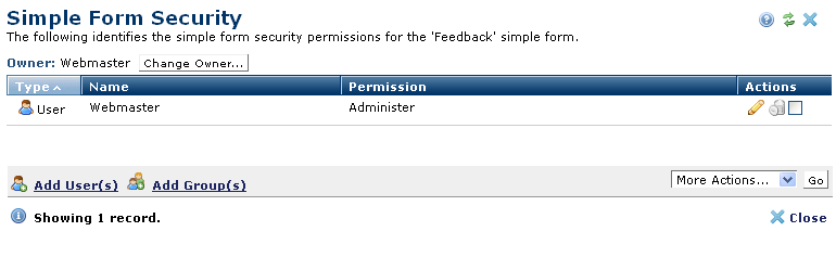 Edit Simple Form Security Permissions